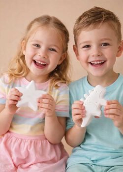 Każde dziecko wykonuje własny odlew gipsowy w wybranej foremce (np. zwierzątko, dinozaur, gwiazdka). Pokazujemy, jak proszek i woda zamieniają się w twardy „kamień”. Gotowy odlew dzieci zabierają do domu jako pamiątkę z wydarzenia.